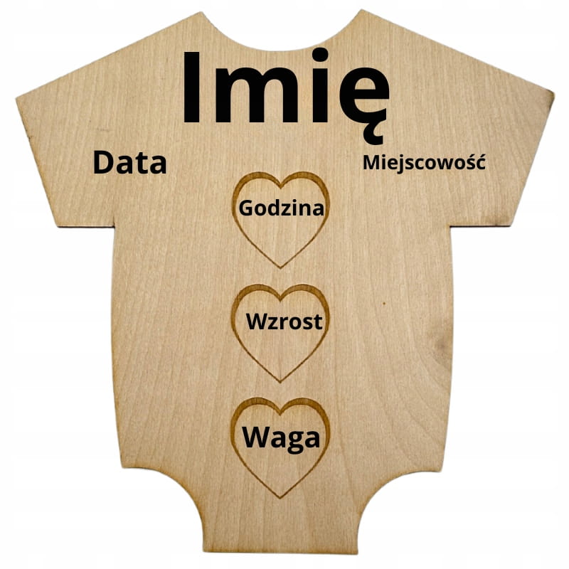 Metryczka to dokument zawierający kluczowe informacje dotyczące narodzin. Metryczka body to doskonały prezent z okazji narodzin lub chrztu dziecka. To wspaniała pamiątka i dekoracja w jednym. Za pomocą dołączonego jutowego sznureczka drewniana metryczka dla dziecka może zawisnąć na ścianie lub stanąć na półce w dowolnym miejscu w pokoju dziecka. Metryczka wykonana z drewnianej sklejki będzie trwałą pamiątką narodzin dziecka, ale również pozwoli utrzymać wystrój pokoju dziecka w bardzo modnym eko stylu.