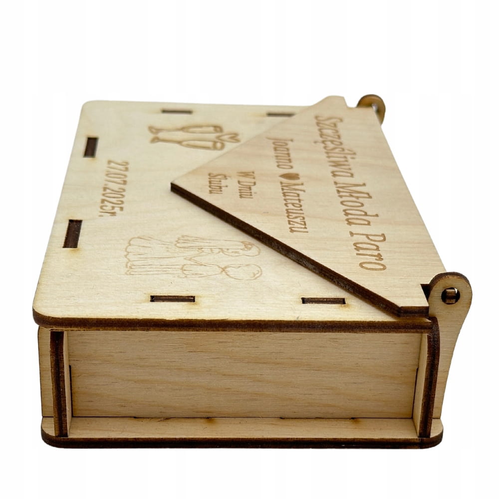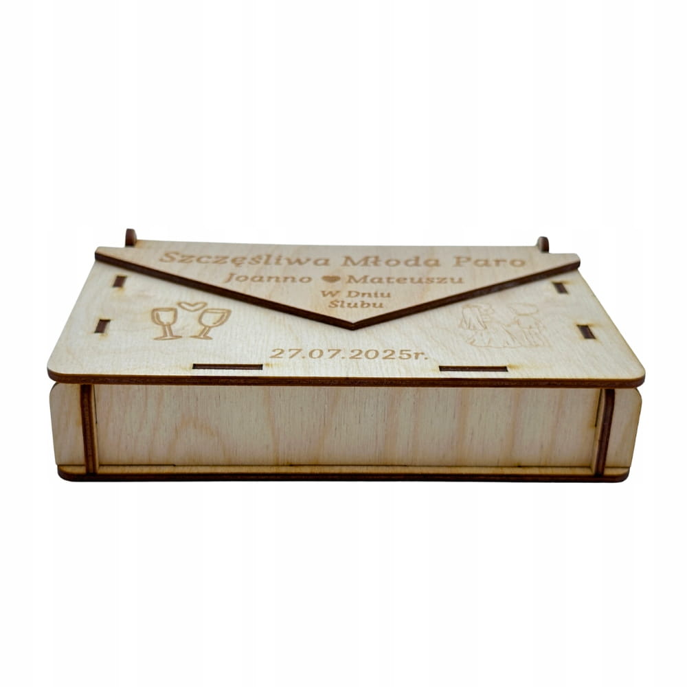 DREWNIANE PUDEŁKO KOPERTA NA PIENIĄDZE ŚLUB WESELE ŻYCZENIA PAMIĄTKA