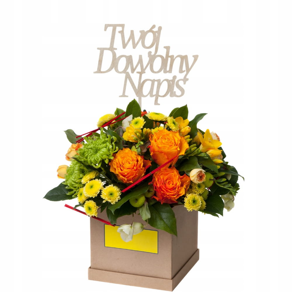 DREWNIANY TOPPER TWÓJ DOWOLNY NAPIS URODZINY TORT KWIATY 5 SŁÓW