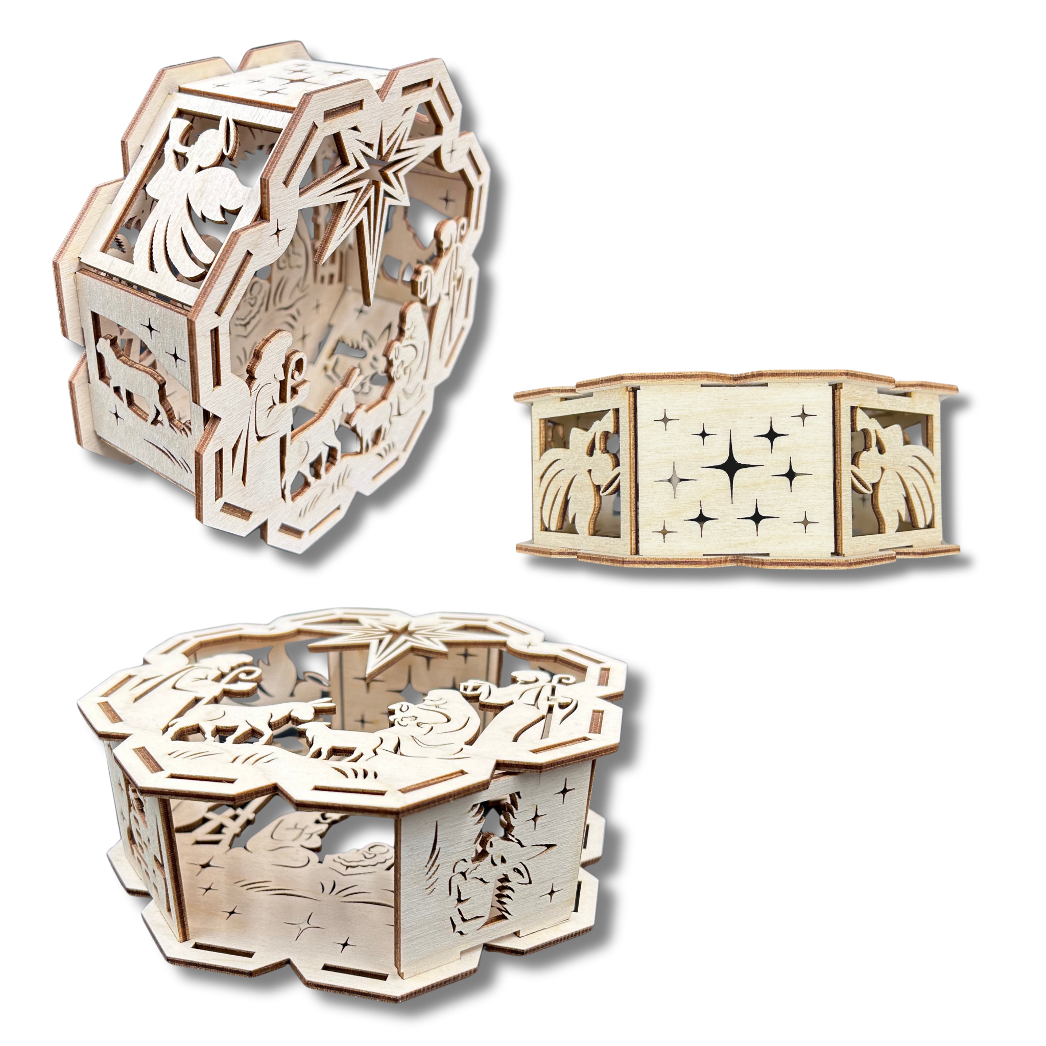 LAMPION Drewniany Sześcian ŚWIĄTECZNY Stajenka ŚWIĘTA Boże Narodzenie – bez lampek LED w zestawie