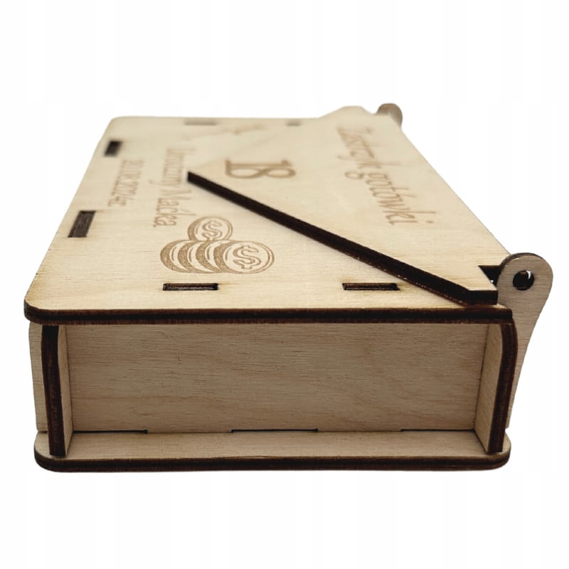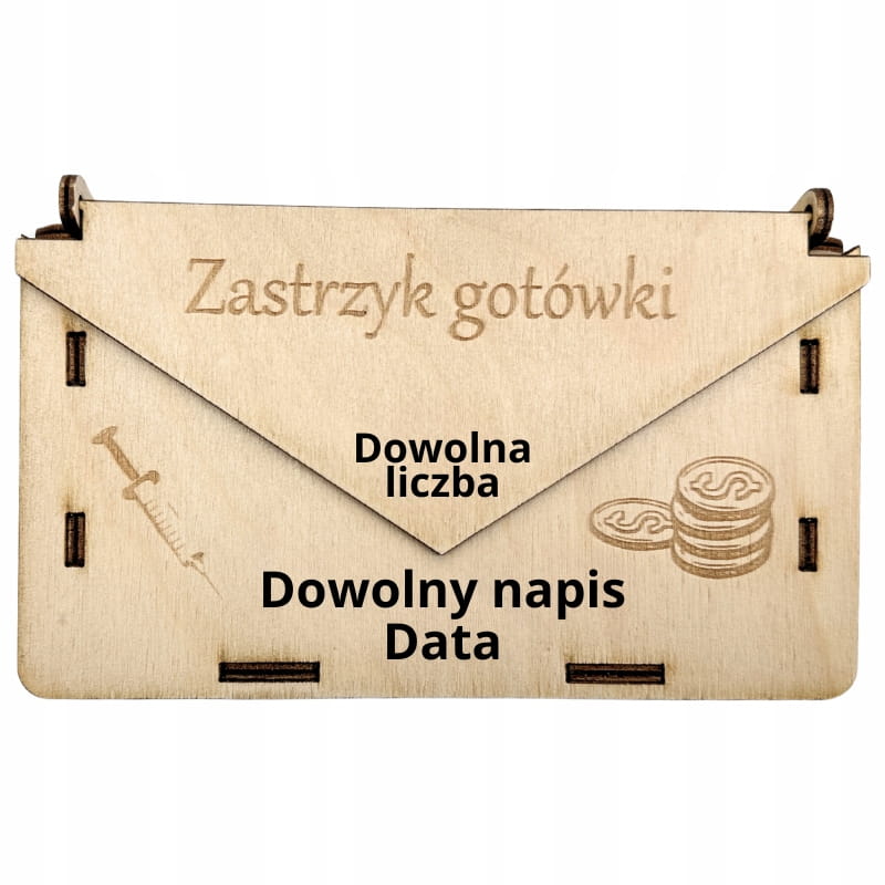 DREWNIANA KOPERTA ZASTRZYK GOTÓWKI NA PIENIĄDZE PREZENT PERSONALIZOWANA