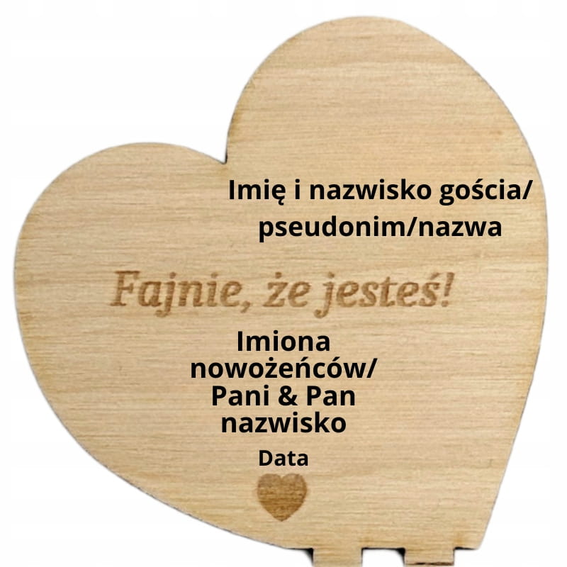 DREWNIANA WINIETKA ŚLUB WESELE PODZIĘKOWANIE DLA GOŚCI 2W1 SERCE DO WYBORU