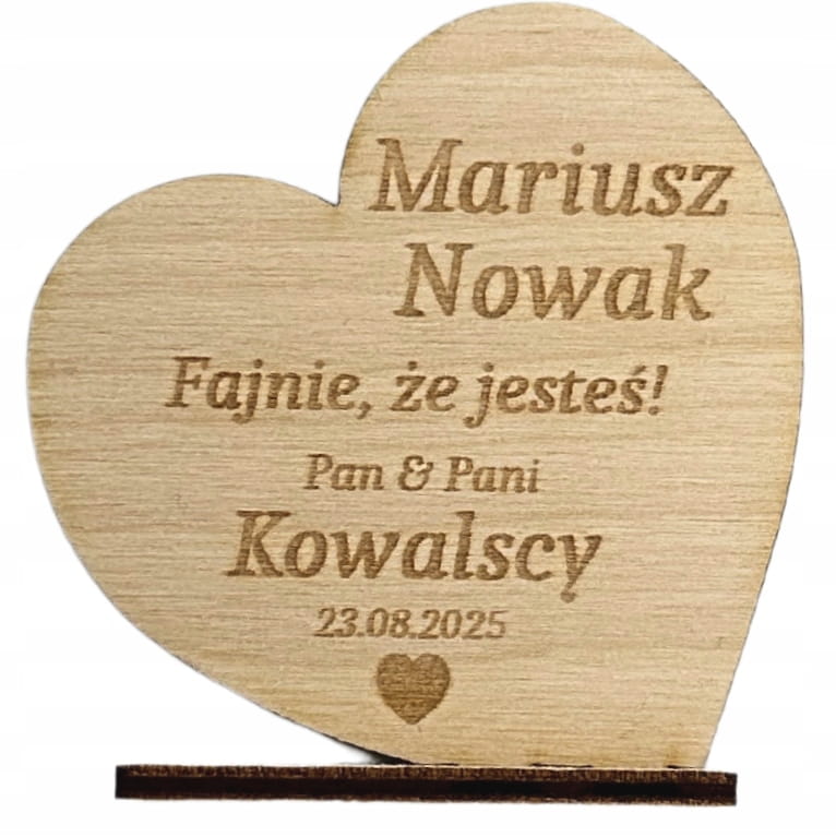 Winietka i podziękowanie ślubne w jednym – te wyjątkowe serca z drewna sklejki stanowią doskonałą harmonię elegancji i sentymentalnej wartości. W kształcie serca, symbolu miłości, są nie tylko praktycznym elementem dekoracyjnym na uroczystości ślubnej, ale również piękną pamiątką dla każdego gościa. Możliwość personalizacji dodaje im osobistego charakteru, sprawiając, że stają się wyjątkowym akcentem na stole weselnym. Wykonane z naturalnego drewna, emanują ciepłem i autentycznością, dodając magii każdemu wydarzeniu. To doskonałe połączenie funkcjonalności, estetyki i emocji, które przypomina o istocie miłości i wdzięczności w najważniejszych chwilach życia.